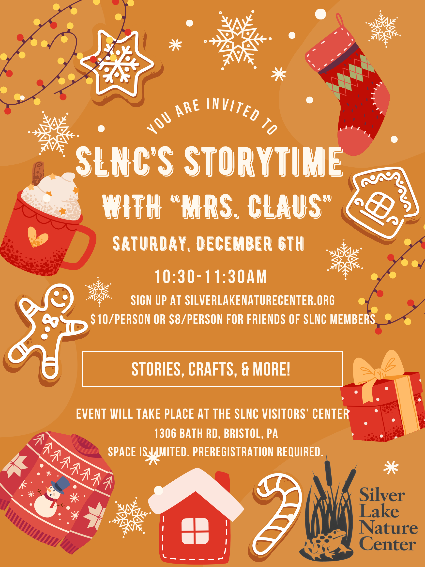 Join “Mrs. Claus” for stories about the North Pole, holiday songs, snacks and a craft, a tour of the SLNC Visitors’ Center, and a Holiday Craft! “Santa Claus” is very busy this time of year, but we are super-excited that “Mrs. Claus” can stop by for a special visit along […]